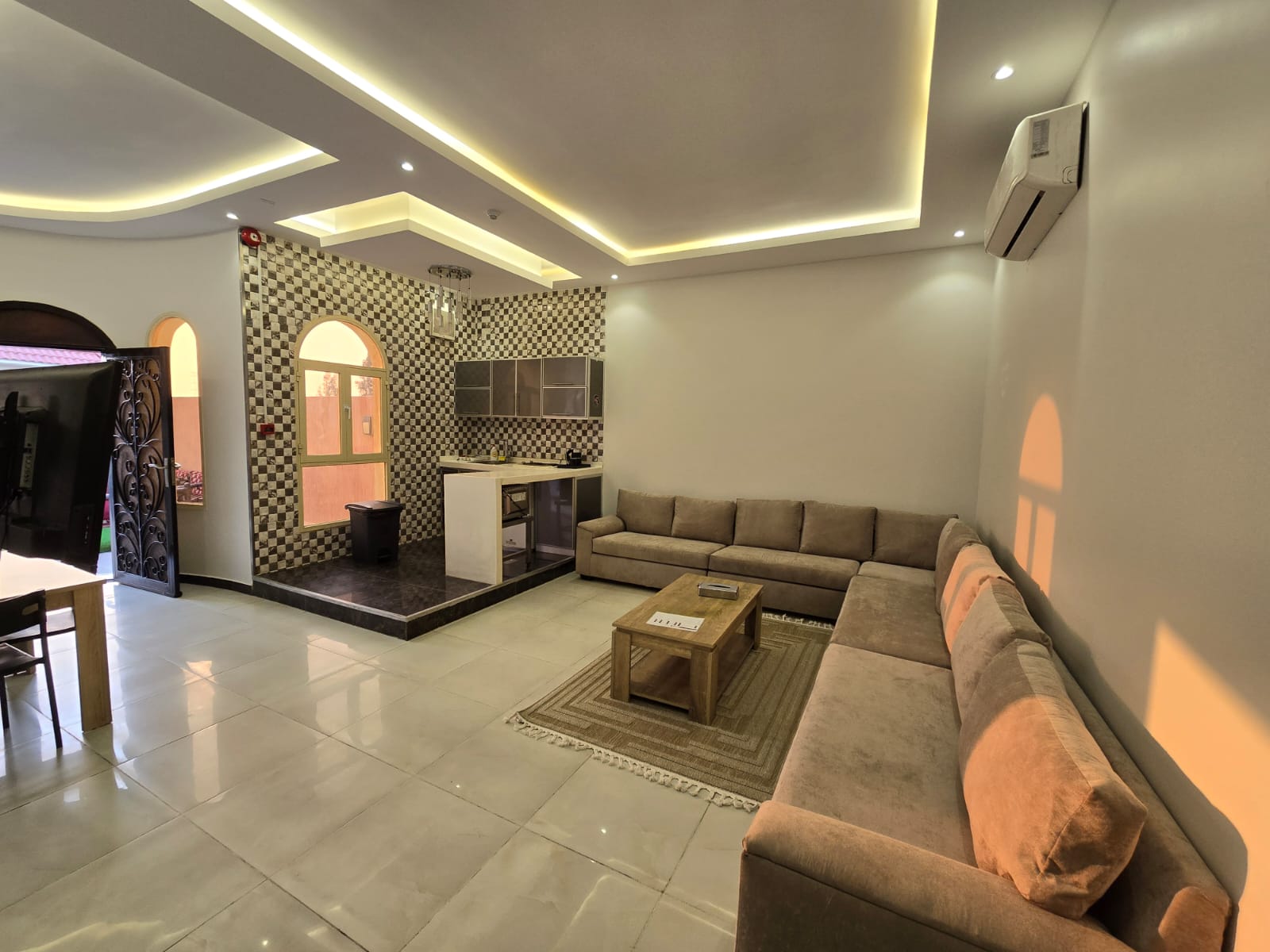 شالية يتكون من غرفتين وصالة وحمام سباحة ودورتي مياه وجلسة خارجيه مجهزه للشواء وباركنج