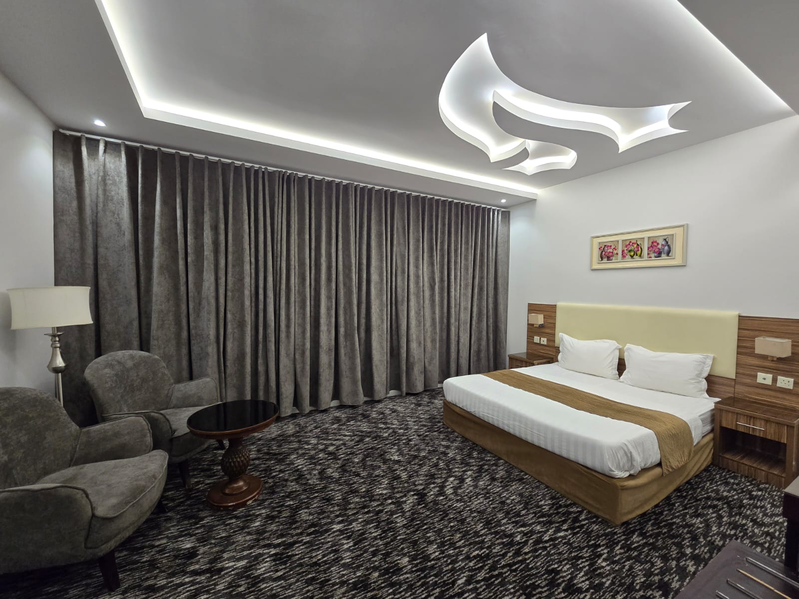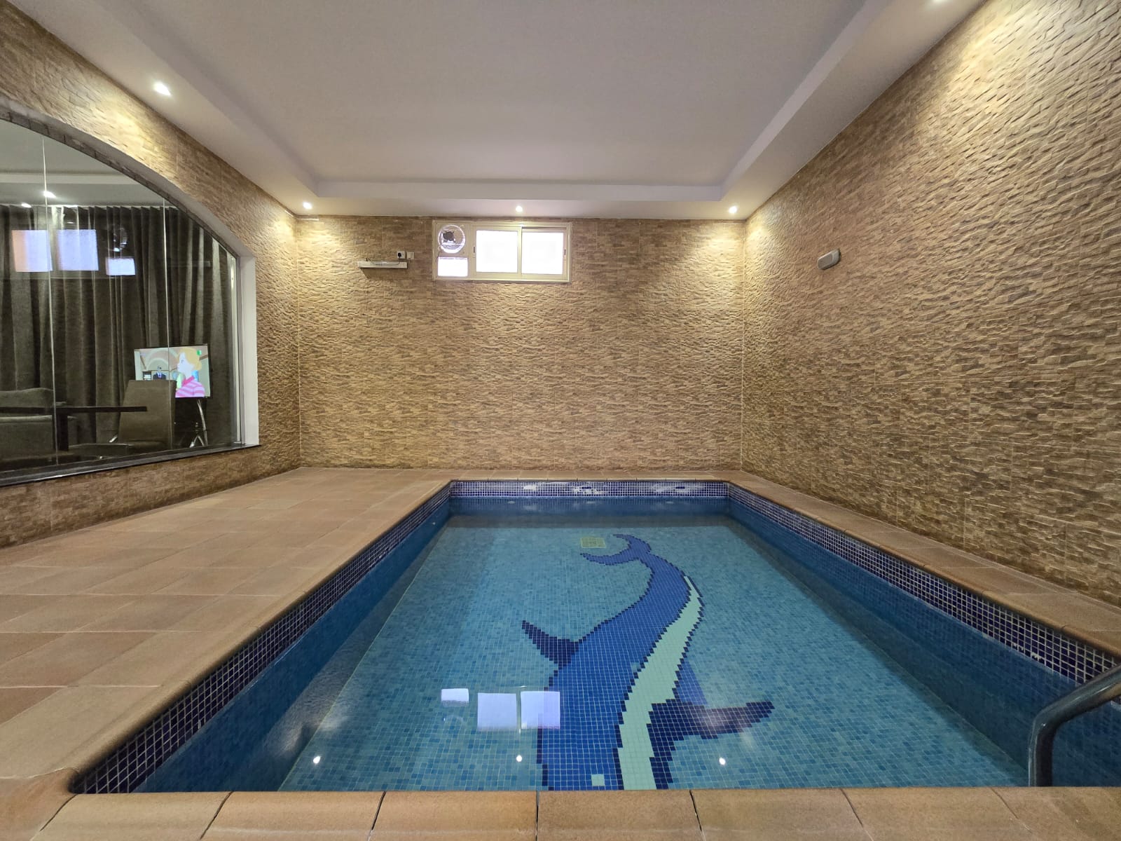 شالية يتكون من غرفه وصالة وحمام سباحة وجاكوزي ودورتي مياه وجلسة خارجيه مجهزه للشواء وباركنج سياره